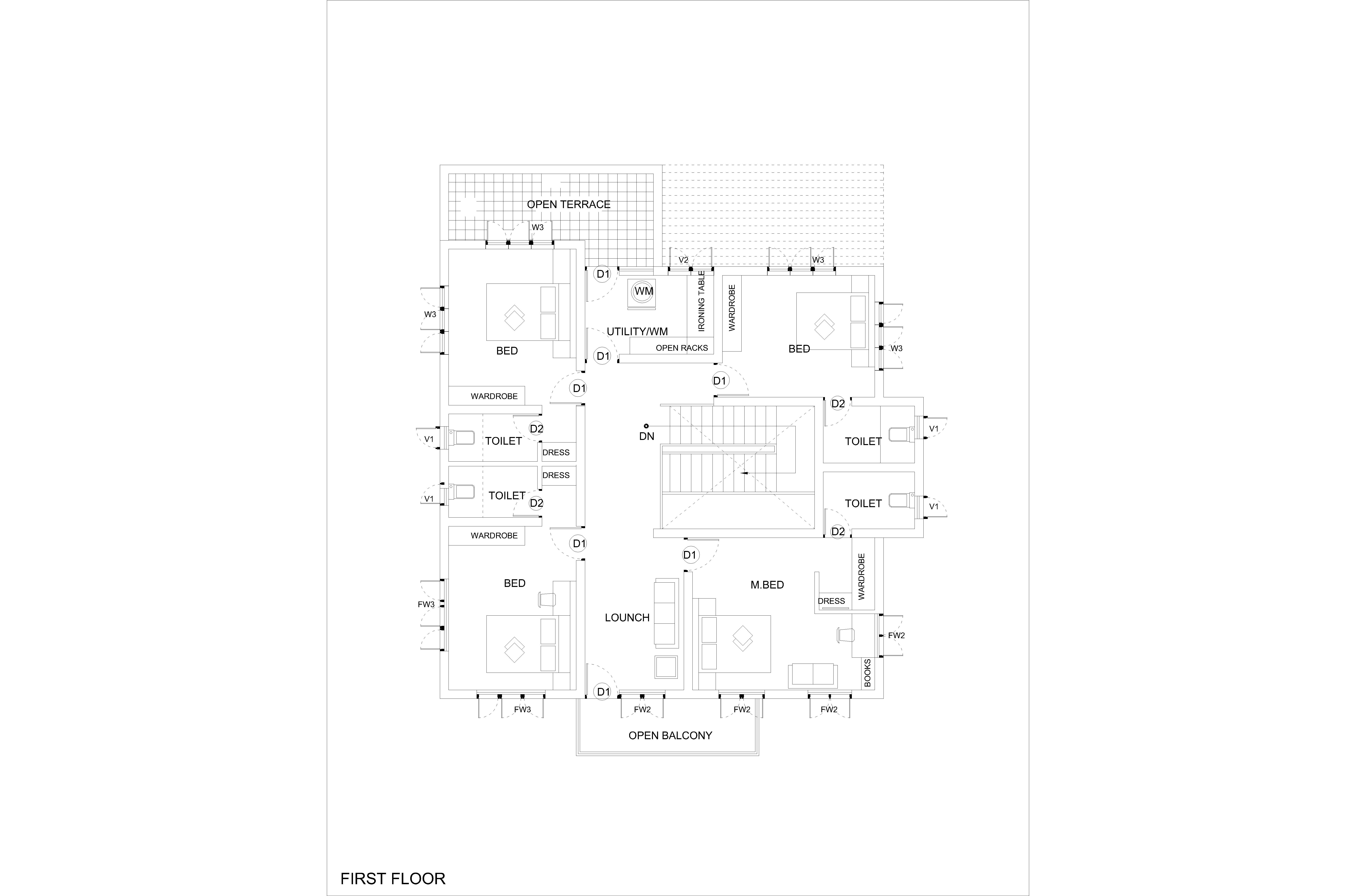 With double charged vitrified tiles for entire area except toilets. Premium quality ceramic tiles for toilets. Granites for staircase, sitouts and kitchen counter. |